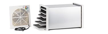 Многие сушилки, представленные на рынке, основаны на вертикальной подаче воздуха, который движется снизу вверх. Недостаток таких машин заключается во влажности, которую поднимающийся воздух переносит с нижних поддонов к верхним. Это препятствует правильному процессу сушки верхних слоев продукта.