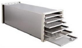 Технология Tauro решает эти проблемы путем производства сушилок с горизонтальным потоком. При такой системе воздух равномерно обдувает продукты, размещенные в сушилке, со всех сторон для максимально равномерной сушки и лучшего результата. В данной модели продукты для сушки могут быть плотно размещены на поддонах, и это не вызовет никаких проблем с распределением потоков воздуха.